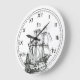 Nautical wall clocks with image of a retro tall ship on the clock face in this decorative wall decor clock design for your boat, sailboat, kitchen or any room in your house you want to add some nautical decor and character. Colors include black and white.