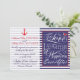 Nautical wedding design invitation, vintage style, with striped pattern.