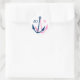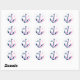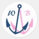 Nautical wedding stickers with monogrammed anchors. Cute idea for maritime theme / beach wedding. Personalizable with name initial letters of bride and groom. Navy blue and pink boat anchor on white background.