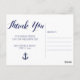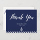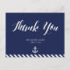 Nautical wedding Thank you postcards with navy blue and white stripes, white anchor and custom white text - you can change text, printed on navy blue background