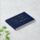 Nautical guestbook for your boat in navy blue with welcome aboard written in gold foil. The o in welcome is replaced with a ship's wheel. Personalize the ship guestbook with the boat name and the year your boat was established with an anchor detail in gold foil. Navy blue and gold ship guestbook with nautical details and custom text. Welcome aboard guestbook for your boat in navy and gold.
