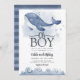 This whale themed invitation is designed to match our watercolor whale collection! This theme is perfect for any gender, boy or girl, with soft tones of blue and grey. This design features a variety watercolor whales with water wave accents and a watercolor background. The backside features a blue lined pattern perfect for any time of the year.