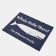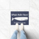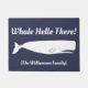 Dark navy blue doormat with a crisp white whale silhouette, the phrase "Whale Hello There!" in white script, and your personalised family name.