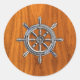 Nautical Wheel on Teak Veneer Classic Round Sticker