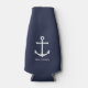 Nautical White Anchor and Custom Name on Navy Blue Bottle Cooler