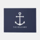Nautical White Anchor and Custom Name on Navy Blue Doormat