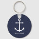 Nautical White Anchor and Custom Name on Navy Blue Key Ring