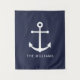 Nautical White Anchor and Custom Name on Navy Blue Tapestry
