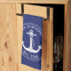 Nautical White Anchor on Navy Blue Family Name Tea Towel