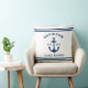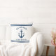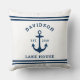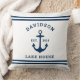 Nautical fleece "Lake House" throw pillow features a coastal style boat anchor and stripes design. Personalise the custom text with a family last name + lake house (or other title) with the year established. Classic white and navy blue (can be modified) colour scheme. Indoor and outdoor pillow fabrics available.