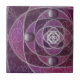 A stained-glass-like design of silver spirals and shades of plum, over a repeating backdrop of spiral fractals. The silver spirals converge into a silver rose design, with round gems for accents.