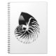 Digital sketch of a striped nautilus shell - grey / grey, black and white shell against a white background