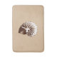 Digital sketch of a striped nautilus shell - dark brown and white shell against a light sand beige background bathmat