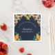 These personalised Citrus Baby Shower Paper Napkins are the perfect addition to your baby brunch celebration. Featuring the playful phrase "A Little Cutie is on the Way," these gender neutral napkins bring a touch of elegance and modern charm to your event. The design showcases an arch of vibrant citrus oranges, beautifully intermingled with lush botanical greenery and pretty white orange blossoms, all set against a chic navy blue background. The Mediterranean-inspired elements and fresh citrus theme make these napkins a standout for your citrus baby shower. Celebrate in style with these vibrant and sophisticated paper napkins, sure to delight your guests!