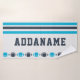Navy and Aqua Football Stripes Custom Bath Towel. Simply edit text to personalise!