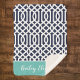 Navy and Aqua Trellis Monogram Sherpa Blanket