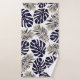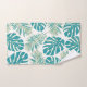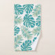 Modern navy and aqua blue tropical leaves and monogram Bath Towel Set. A contemporary design that displays monstera and palm leaves in navy blue and turquoise with gold outline. The wash cloth includes a leaf and your monogram in a navy blue frame.