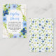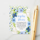 This beautiful and elegant display shower enclosure card features watercolor baby blue and navy blue flowers with foliage on a gold geometric frame. The text combines handwritten script and serif fonts for a stylish and modern look. This is perfect for a spring or summer rustic baby shower.