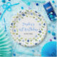 This beautiful and elegant plate features watercolor baby blue and navy blue flowers with foliage. The text combines handwritten script and serif fonts for a stylish and modern look. This is perfect for a spring or summer rustic birthday party.