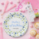Navy and Baby Blue Floral Birthday Paper Plate