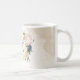 Beautiful coffee mug featuring navy and blush pink flowers and green leaves.
