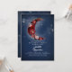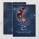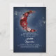 Navy blue and burgundy red celestial birthday party invitations feature starry night sky and the romantic floral crescent moon