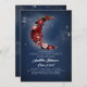 Navy blue and burgundy red celestial graduation party invitations feature starry night sky and the romantic floral crescent moon