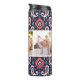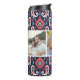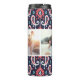 Custom monogrammed thermal tumbler personalised with your family photos and text. This cute preppy design has an ikat paisley patterned background in navy, coral and turquoise colours with a custom 3 photo collage template. Add your name monogram or other custom text. Use the design tools to edit the text fonts and colours or add more photos to create a one of a kind design.