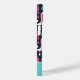 Custom monogrammed phone case with a boho ikat paisley pattern in navy blue, coral and turquoise colours. Personalise it with your name or monogram in a colorblock frame. Use the design tools to edit the text fonts and colours or upload your own photos to create a one of a kind design.