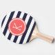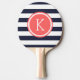 Navy and Coral Preppy Stripes Monogram Ping Pong Paddle