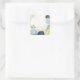 Beautiful wedding thank you sticker featuring navy and dusty blue flowers and green leaves