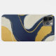This is a modern abstract painting chraacterised by a bold, sophisticated colour palette of deep navy blue, creamy white, and rich metallic gold. The composition features organic, flowing shapes that interlock and swirl across the square canvas, creating a dynamic sense of movement. Thin, elegant gold lines trace smooth, curvilinear paths over the main colour blocks, adding a luxurious, refined layer. The texture is visible, suggesting the use of acrylic or oil paint on canvas with a slight impasto effect in the thicker areas. The overall mood is one of chic elegance and modern simplicity, perfect for contemporary interior design.
