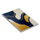 This is a modern abstract painting chraacterised by a bold, sophisticated colour palette of deep navy blue, creamy white, and rich metallic gold. The composition features organic, flowing shapes that interlock and swirl across the square canvas, creating a dynamic sense of movement. Thin, elegant gold lines trace smooth, curvilinear paths over the main colour blocks, adding a luxurious, refined layer. The texture is visible, suggesting the use of acrylic or oil paint on canvas with a slight impasto effect in the thicker areas. The overall mood is one of chic elegance and modern simplicity, perfect for contemporary interior design.