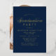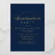 Elegant graduation party invites featuring your graduation party details with gold foil script lettering on a navy blue background. The simple graduation party invites reverse to display the graduate's full-bleed photo. The gold foil graduation party invite is perfect for high school and college graduates!