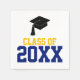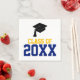 Decorate your party table with these Navy and Gold Class of 2024 Graduation Party Napkin. Personalise with your graduate's class year. It features 'Class of 20xx' in navy and gold and a black grad cap.