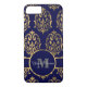 Chic elegant dark navy blue traditional vintage damask pattern and personalised monogrammed name and text templates. Personalise this formal sophisticated retro baroque swirly antique wallpaper patterned design with your custom monogram and name to the templates to create a unique stylish fashionable girly modern case, for her or him. Visit the CUSTOMIZEDSKINS STORE for matching products, PLEASE NOTE the golden colour is not metallic you can also customise the colour of the font from a range of over 200 custom colours.