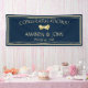 A Navy and Gold Elegant Wedding Congratulations Banner for your Reception Accessories designed with gold coloured text, borders and decorative hearts on a classic navy background. To personalise with the Bride & Groom's Names and Wedding Date, simply insert your text into our easy template, replacing the sample. Be sure to view the complete Navy and Gold Elegant Wedding Collection for matching stationery and accessories.