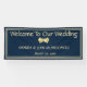 Add this Classic Navy and Gold Elegant Wedding Reception Banner to your Reception Accessories. Designed with gold coloured text, border and hearts on a navy background. The text includes: Welcome To Our Wedding, The Bride and Groom's Names and Wedding Date. To personalise, simply insert your text into our easy template, replacing the sample. Be sure to add the additional Reception Accessories including the Wedding Table Card, Seating Place Card, Wedding Menu and Wedding Guestbook.