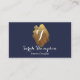 Navy and gold monogram business card, with white text.