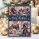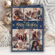 Navy and Gold Snowflake 6 Photo Collage Christmas Holiday Card
