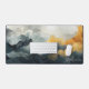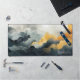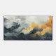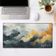 Elevate your workspace with this stunning watercolor abstract desk mat. The design features a dramatic, flowing landscape of deep navy, slate grey, and golden mustard tones, accented by delicate gold glitter veins that add a touch of luxury. A personalised name is elegantly displayed in a white script font in the lower corner, creating a professional and artistic focal point for your office or home study. This high-quality, durable mat provides a smooth surface for your mouse and keyboard while protecting your desk. With its sophisticated colour palette and modern aesthetic, this desk accessory brings a refined, artistic flair to your daily routine, making it a perfect gift for yourself or a stylish coworker.