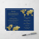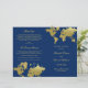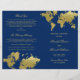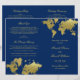 A luxurious gold foil-style world map glows against a rich navy background on this striking ceremony program for travel-loving couples and destination weddings. "Marriage Ceremony Uniting" introduces your names in elegant script beneath the gilded map, with gold splatter accents adding artistic depth. Inside pages are fully customisable for your bridal party, ceremony order, and a personal thank you message on the back cover. Programs are printed on text-weight paper and arrive flat, requiring a simple centre fold.