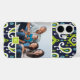 Custom made phone case personalised with your photos and text. This cute preppy design has an ikat paisley patterned background in navy, green and turquoise colours with a custom photo template. Add your name monogram or your own unique message. Click Customise It to edit the text fonts and colours or add more photos to create a one of a kind design.