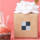 Two navy rectangles and two grey rectangles form a chequered pattern in this clean digital design. It has a bold but classic look to it.