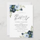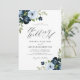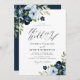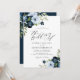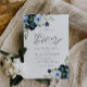 watercolor navy blue and light blue flowers with a gold frame and elegant text. The colours and text can be personalised.