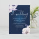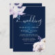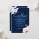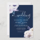 This gorgeous floral wedding suite features soft pink and lilac roses against a dramatic navy blue background. Romantic calligraphy script is complimented by a clean modern font that highlights your wedding details. Perfect for a spring or summer wedding. Easily edit the template with your details.