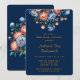 A watercolor illustration of a bright peony bouquet in navy blue and orange. The bouquet consists of peonies with large, round blooms and deep green leaves. The background is navy blue. Matching Invitations and wedding supplies are available in this collection suite
