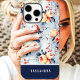 This sophisticated phone case features a striking design of peach roses and delicate floral accents set against a muted blue background. The modern floral arrangement is enhanced by a bold navy band at the bottom, showcasing a customisable name for a unique and stylish touch. Perfect for those who appreciate feminine and contemporary designs, this case is ideal for daily use or as a thoughtful gift.