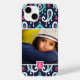 Navy and Pink Ikat Paisley Custom Photo Monogram Case-Mate iPhone Case