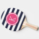 Navy and Pink Preppy Stripes Monogram Ping Pong Paddle